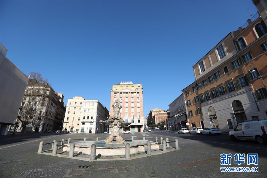 3月16日,在意大利首都羅馬,巴貝里尼廣場(chǎng)空曠無游人。新華社記者程婷婷攝