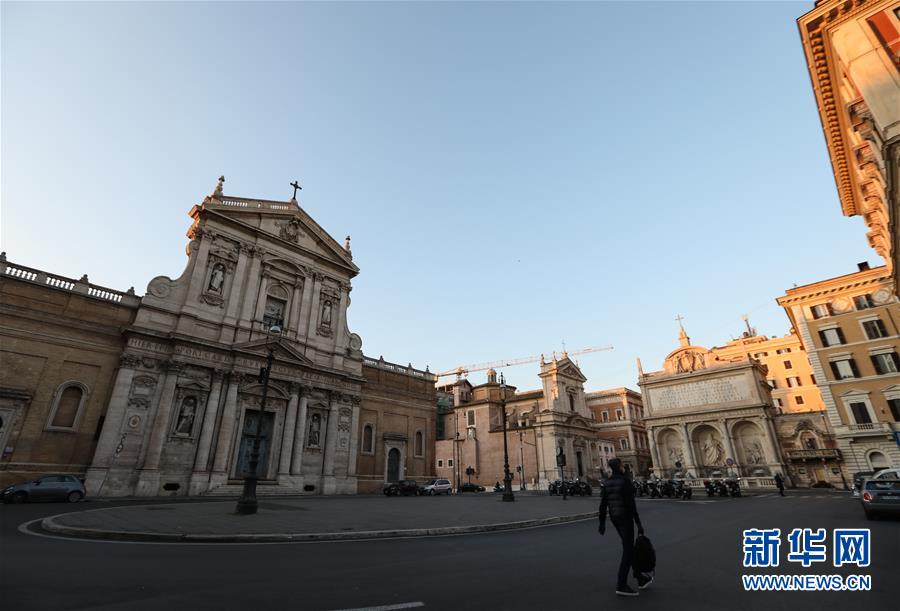 3月16日,在意大利首都羅馬,一名男子戴著口罩走過(guò)廣場(chǎng)。新華社記者程婷婷攝
