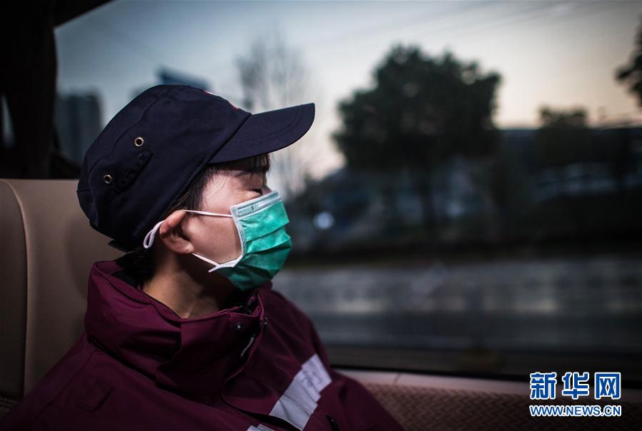 3月17日,陜西國家緊急醫(yī)學(xué)救援隊返程途中經(jīng)過他們奮戰(zhàn)43天的青山方艙醫(yī)院時,隊員閔渝婷落下淚水。新華社記者肖藝九攝