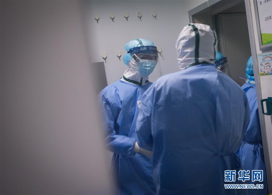 3月19日,在武漢市肺科醫(yī)院隔離病房,海南醫(yī)療隊隊員在現(xiàn)場忙碌。 新華社記者 肖藝九 攝