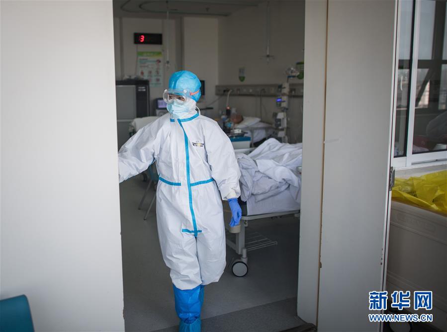 3月19日,在武漢市肺科醫(yī)院隔離病房,海南醫(yī)療隊(duì)隊(duì)員在現(xiàn)場(chǎng)忙碌。 新華社記者 肖藝九 攝
