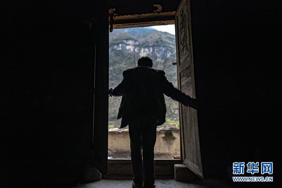 云南省永善縣大興鎮(zhèn)駱丘村村民晏付高關(guān)上老屋的大門準(zhǔn)備離開(3月14日攝)。 新華社記者 江文耀 攝