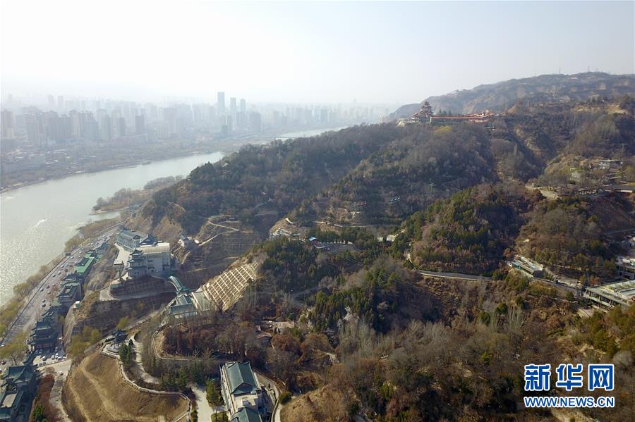 這是3月19日在蘭州市城關(guān)區(qū)拍攝的蘭州白塔山(無人機照片)。 新華社記者 范培珅 攝