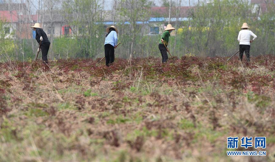 湖北當陽市壩陵辦事處群華村農(nóng)民在中藥材白芍田里除草(3月21日攝)。近日,湖北當陽市農(nóng)業(yè)生產(chǎn)和農(nóng)產(chǎn)品加工加速恢復。截至3月19日,當陽市86家規(guī)上農(nóng)產(chǎn)品加工企業(yè)復工復產(chǎn)率為84.9%,51家農(nóng)業(yè)產(chǎn)業(yè)化重點龍頭企業(yè)有48家復工復產(chǎn),占比達94.1%。新華社記者程敏攝