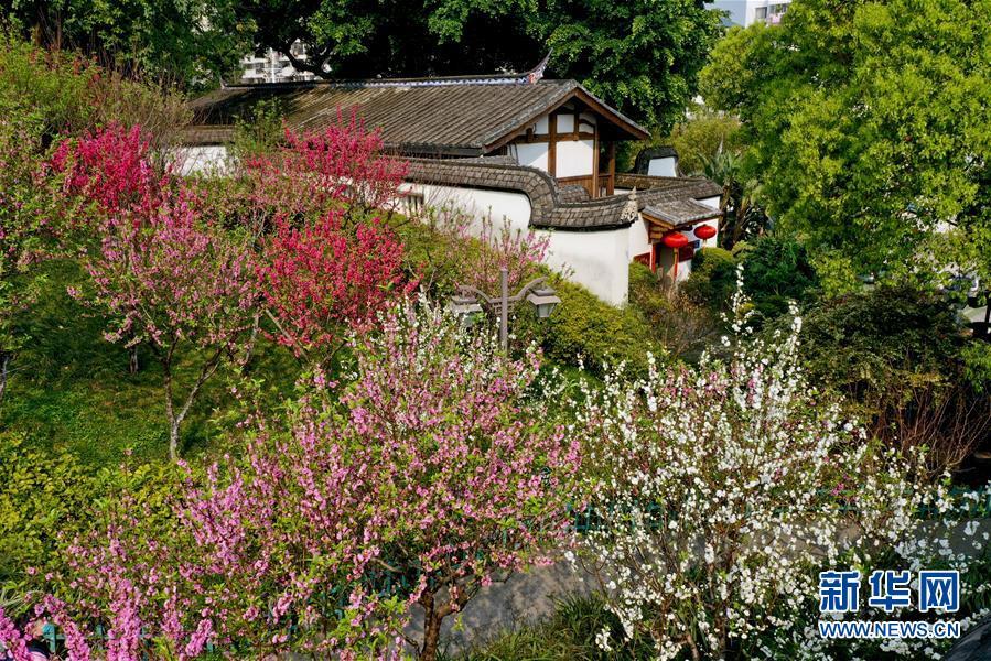 3月22日,在福州烏山歷史風貌區(qū),繁花綠樹掩映著一處傳統(tǒng)古厝(無人機照片)。近日,福建省福州市烏山、三坊七巷等歷史文化街區(qū)內(nèi)草木吐綠,鮮花盛開,掩映著一座座傳統(tǒng)古厝,更顯濃濃春意。新華社記者姜克紅攝
