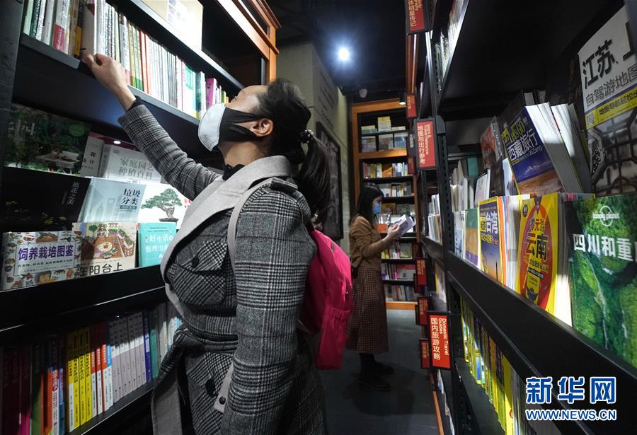3月22日,顧客在上海市中山北路上的一家書(shū)店內(nèi)選購(gòu)圖書(shū)。近期,上海市的一些實(shí)體書(shū)店陸續(xù)恢復(fù)開(kāi)放。為做好疫情防控工作,目前進(jìn)入書(shū)店需要測(cè)量體溫,書(shū)店也縮短了運(yùn)營(yíng)時(shí)間。新華社記者陳飛攝