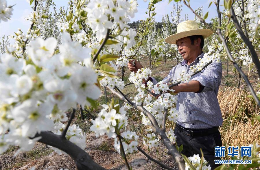 3月22日,云南省曲靖市沾益區(qū)炎方鄉(xiāng)炎方村的農(nóng)民在果園里作業(yè)。春季里,云南省曲靖市沾益區(qū)鄉(xiāng)村果園里的桃花梨花競(jìng)相綻放,景色秀美,吸引游人前來觀光。新華社記者楊宗友攝