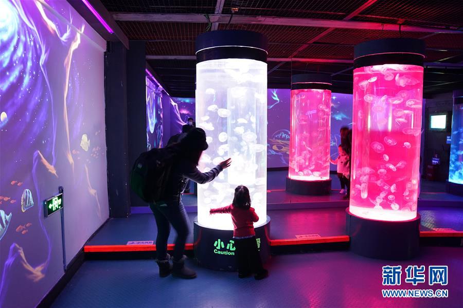 3月23日,游客在哈爾濱極地館觀賞水母。當日,哈爾濱極地館恢復(fù)營業(yè)。目前,極地館日接待人數(shù)不超過400人,園區(qū)采取分時段、間隔性辦法安排游客有序入園。游客實名預(yù)訂門票,入園要配合測溫、佩戴口罩、掃描“龍江健康碼”,刷身份證入館。新華社記者王建威攝