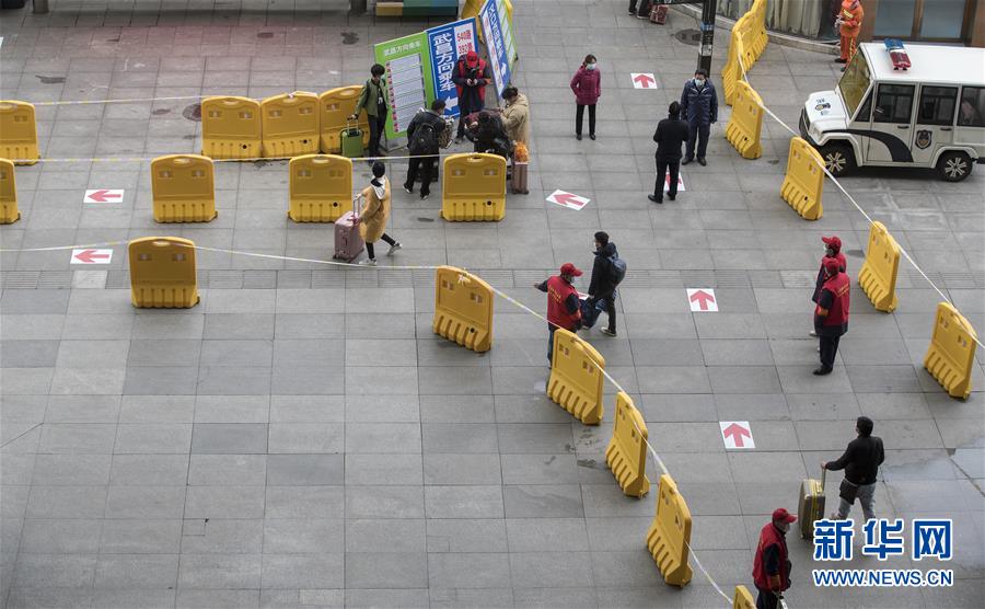 3月28日,工作人員引導(dǎo)出站的旅客按照不同的路線乘坐公交車。新華社記者費(fèi)茂華攝