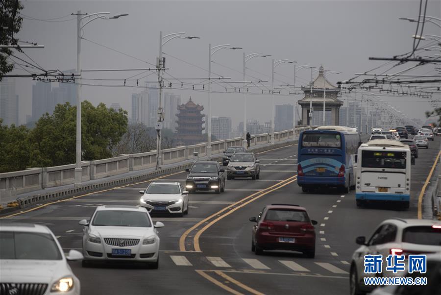 3月25日拍攝的武漢長江大橋上的車輛。新華社記者費(fèi)茂華攝