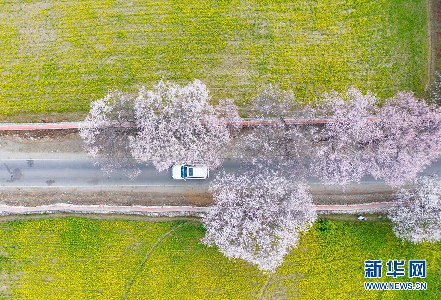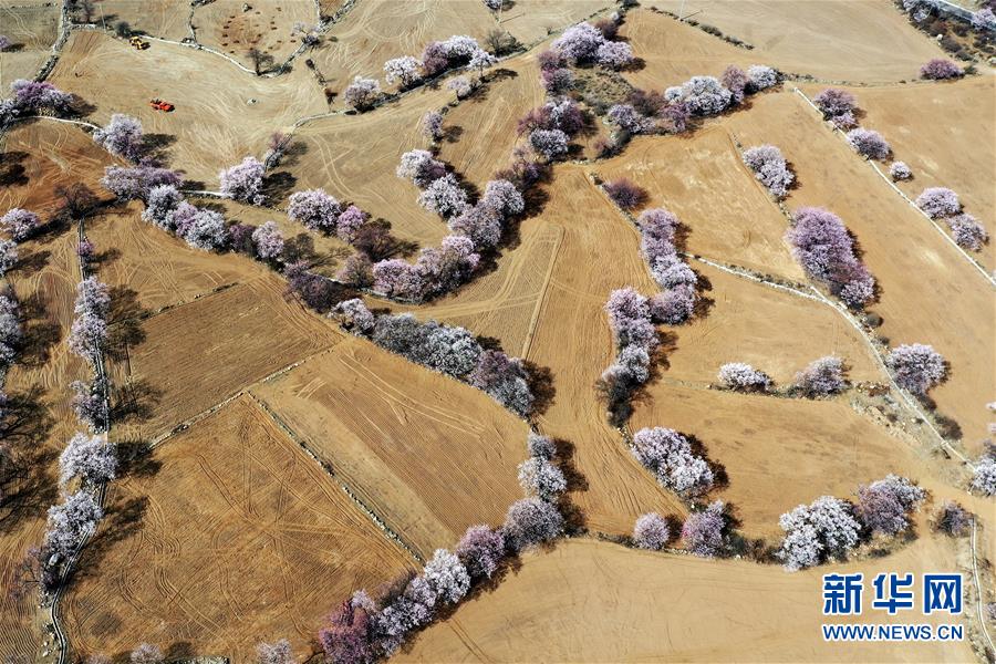 西藏林芝市波密縣境內桃花盛開的田園風光(無人機照片,3月26日攝)。新華社記者 晉美多吉 攝
