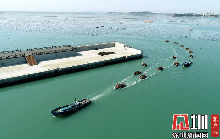 2020年3月29日,山東威海,榮成市愛連灣海水養(yǎng)殖區(qū)域,養(yǎng)殖工人開始收割海帶。