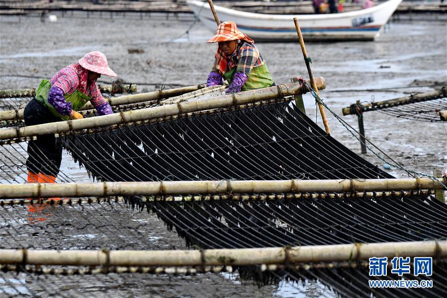 10月24日,福建莆田蔣山村村民在收獲紫菜。 新華社記者張國(guó)俊攝