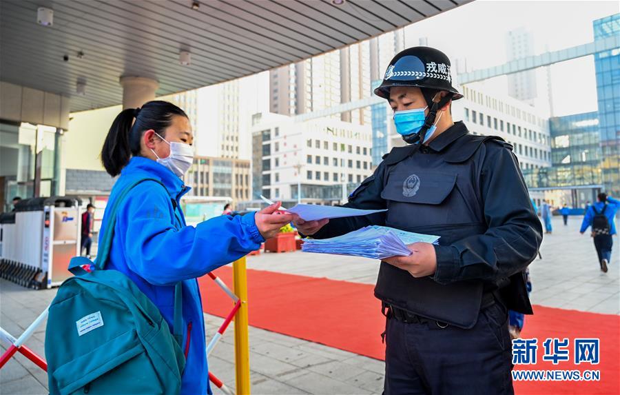 3月30日,呼和浩特市第三十五中學(xué)工作人員在校門口收回學(xué)生假期健康登記表。當(dāng)日,內(nèi)蒙古自治區(qū)全區(qū)高三和初三年級(jí)開(kāi)學(xué)復(fù)課。新華社記者連振攝