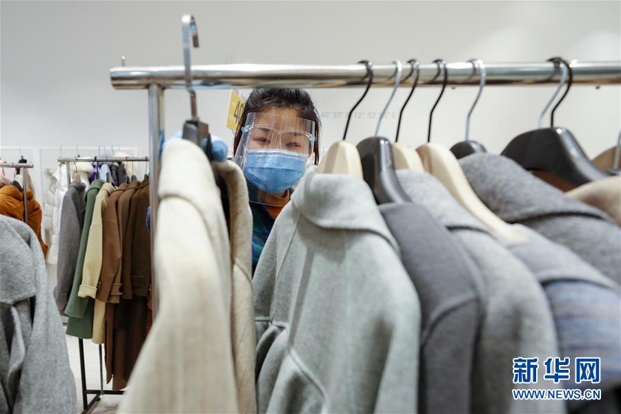 3月30日,在武漢市武商世貿(mào)廣場(chǎng),銷售員在整理貨架上的衣服。當(dāng)日,武漢市多家商場(chǎng)開(kāi)門迎客。新華社記者沈伯韓攝