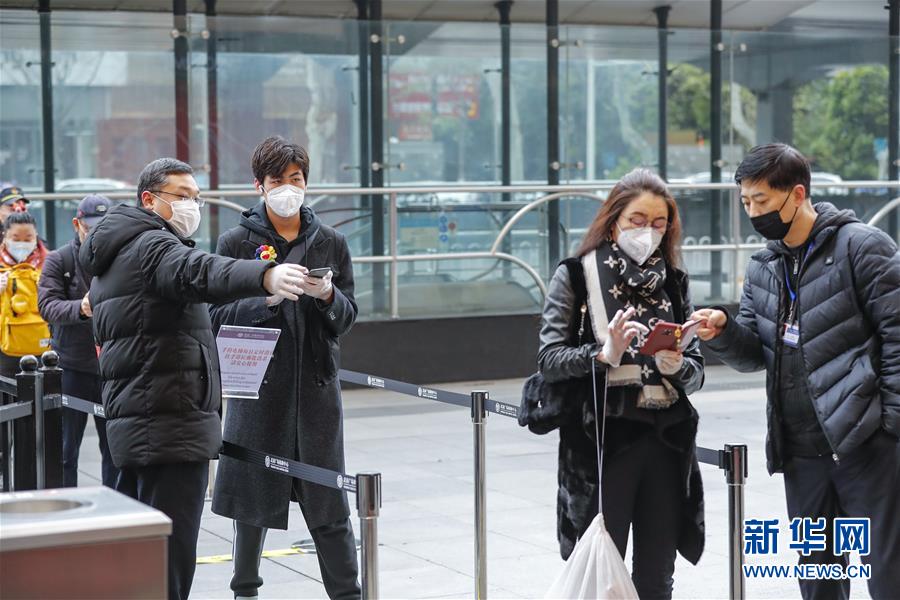 3月30日,在武漢市武商廣場外,人們在工作人員指引下,用手機掃描健康碼后進入商場購物。當日,武漢市多家商場開門迎客。新華社記者沈伯韓攝