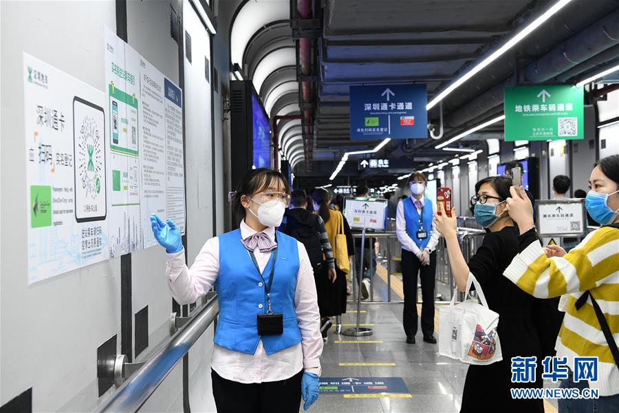 3月18日晚高峰時(shí)段,在深圳地鐵車公廟站,乘客掃描二維碼進(jìn)行實(shí)名登記。新華社記者梁旭攝