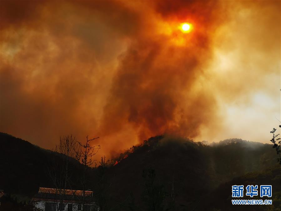 這是3月31日在四川省西昌市邛海畔拍攝的瀘山火場(chǎng)畫面。新華社記者惠小勇攝