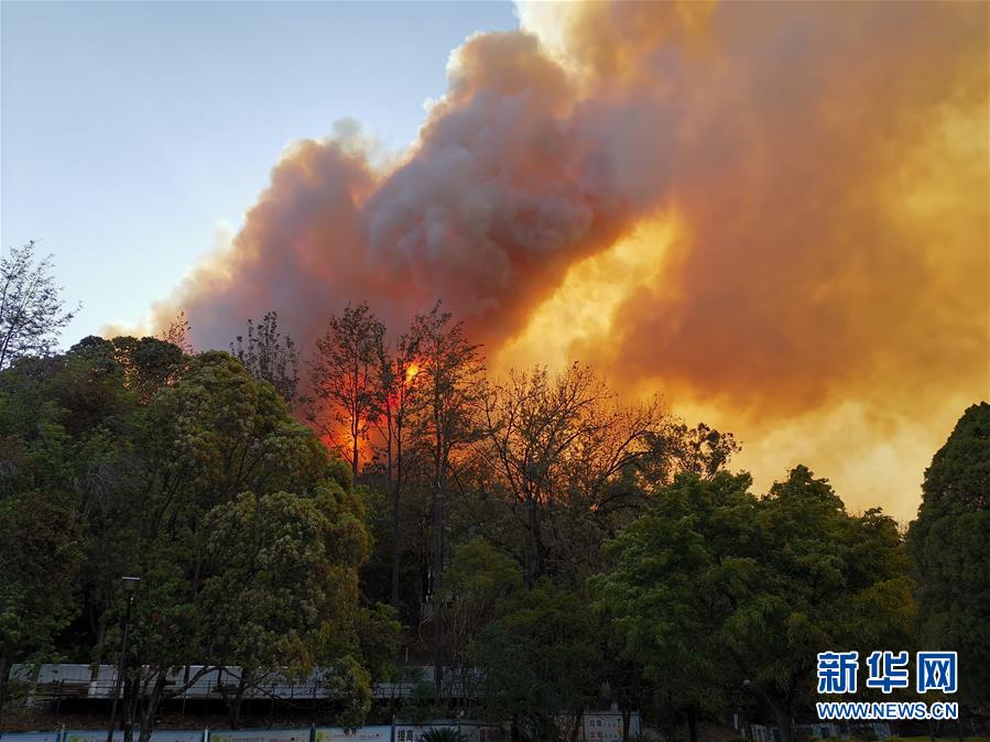 這是3月31日在四川省西昌市邛海畔拍攝的瀘山火場(chǎng)畫面。新華社記者惠小勇攝