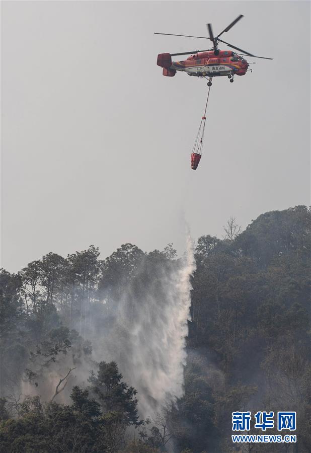 4月1日,一架卡-32大型直升機(jī)在西昌森林火災(zāi)現(xiàn)場(chǎng)撲火。新華社記者江宏景攝