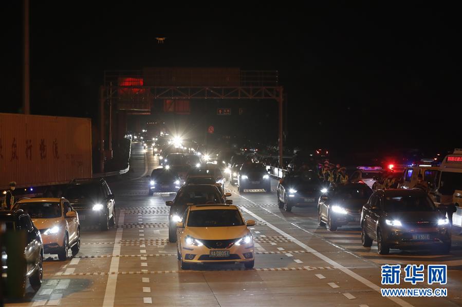 4月8日凌晨,車輛準備通過武漢西高速收費站。 新華社記者 沈伯韓 攝