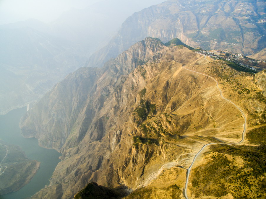 航拍云南山區(qū)“魔鬼公路” 在原地盤(pán)旋海拔下降1200米