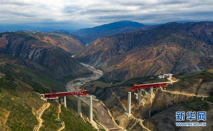 3月5日,空中俯瞰建設(shè)中的中老鐵路元江特大橋(無(wú)人機(jī)照片)。近期,中老鐵路玉溪至磨憨段有序復(fù)工復(fù)產(chǎn),由中鐵四局承建的中老鐵路全線重點(diǎn)控制性工程——元江特大橋、南溪河特大橋正在加緊施工建設(shè)。新華社記者江文耀攝