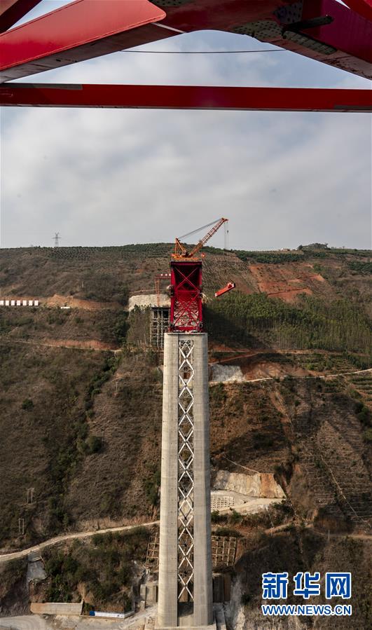 4月8日,中鐵四局的工人們進行鋼桁梁架設(shè)作業(yè)。新華社記者江文耀攝