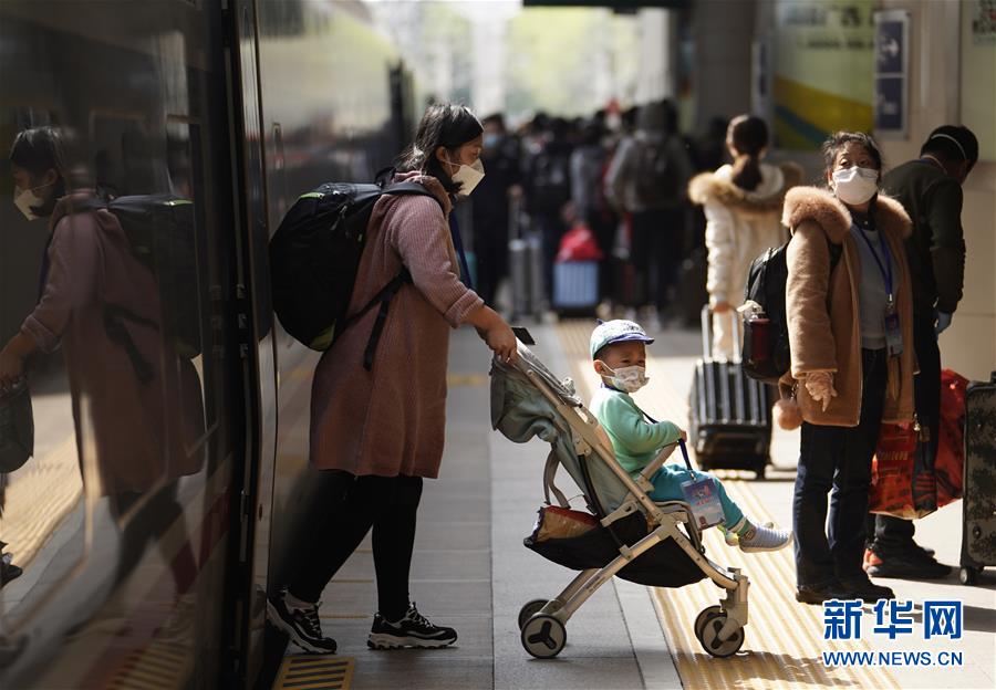 4月8日,G4802次列車的旅客在北京西站下車。新華社記者邢廣利攝