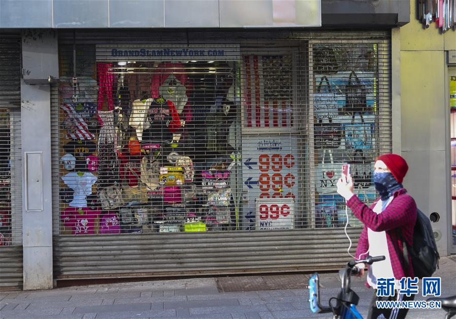 3月21日,在美國紐約時報廣場,一家紀(jì)念品商店關(guān)閉。新華社記者王迎攝