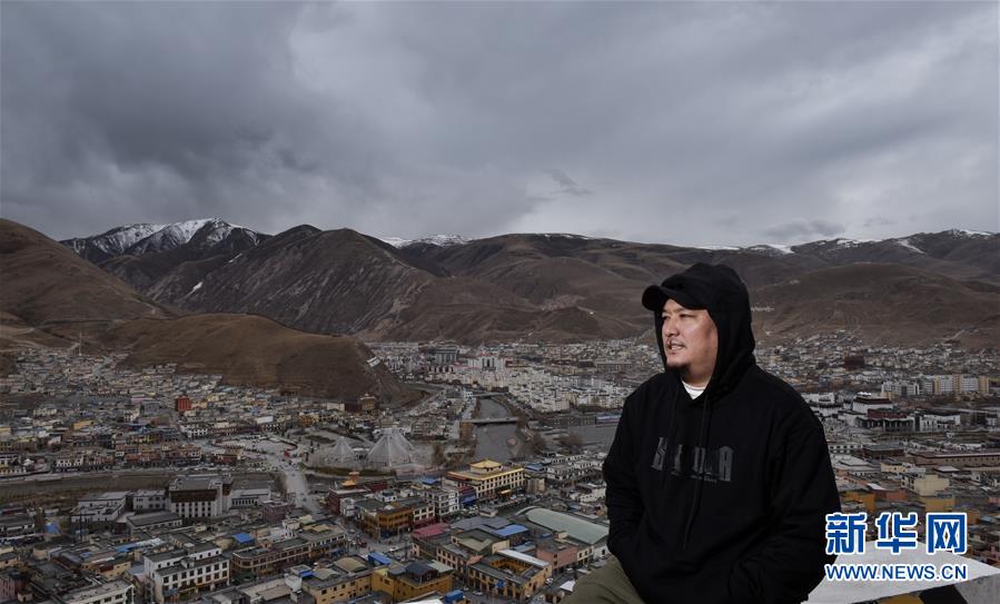 4月10日,才仁俄賽在結(jié)古寺遠眺新玉樹全景。