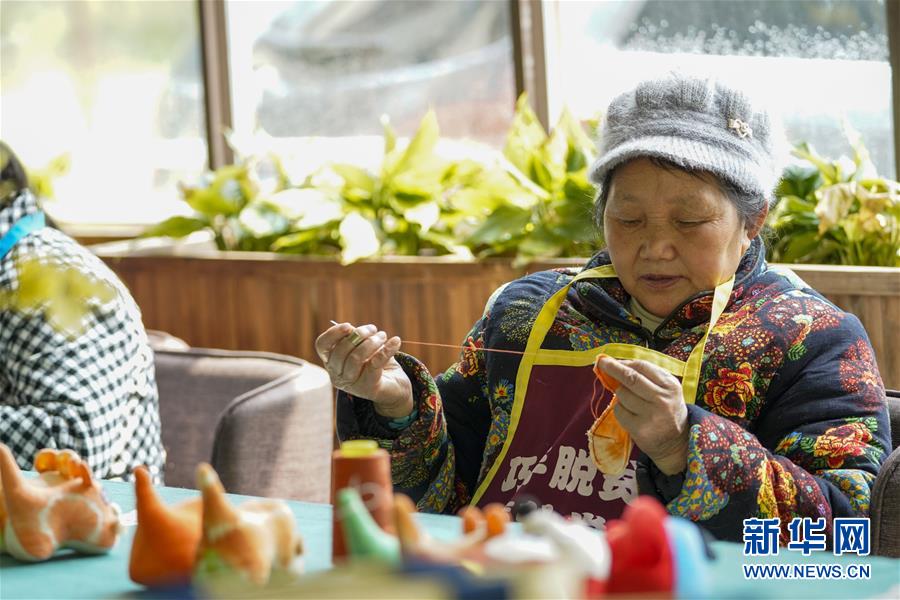 4月8日,在重慶石柱中益鄉(xiāng)巾幗扶貧工坊,當(dāng)?shù)貗D女縫制土家族風(fēng)情布老虎。近年來,重慶市石柱土家族自治縣中益鄉(xiāng)在重慶市婦聯(lián)的幫助下,以當(dāng)?shù)胤沁z傳統(tǒng)技藝作為結(jié)合點(diǎn),把扶貧與扶志、扶智相結(jié)合,通過引進(jìn)外來文創(chuàng)企業(yè)對留守婦女、貧困及殘疾人群進(jìn)行刺繡培訓(xùn),設(shè)立巾幗扶貧工坊等多種形式,幫助當(dāng)?shù)卮迕駥?shí)現(xiàn)就業(yè)增收。據(jù)介紹,巾幗扶貧工坊運(yùn)行以來,為當(dāng)?shù)仃懤m(xù)開發(fā)出土家族布老虎、手提袋、餐墊繡邊、創(chuàng)意相框等一系列文創(chuàng)產(chǎn)品,幫助參加巾幗扶貧工坊的留守婦女和貧困村民實(shí)現(xiàn)月均增收近千元。新華社記者劉潺攝