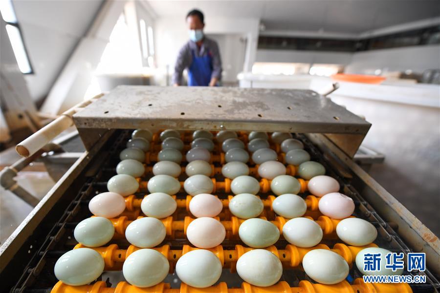 江蘇高郵鴨集團(tuán)的工作人員將腌制好的鴨蛋放到塑封包裝流水線上(4月15日攝)。“高郵鴨蛋”是江蘇高郵的特色農(nóng)業(yè)名片。近年來,當(dāng)?shù)卦诹挤N繁育、生態(tài)養(yǎng)殖、產(chǎn)品加工等方面加大力度,推動高郵鴨蛋品牌化建設(shè),讓小鴨蛋成為帶動農(nóng)戶致富的大產(chǎn)業(yè)。2019年,高郵市共計生產(chǎn)熟制鴨蛋產(chǎn)品近11.2億枚,年產(chǎn)值近17.68億元。新華社記者李博攝