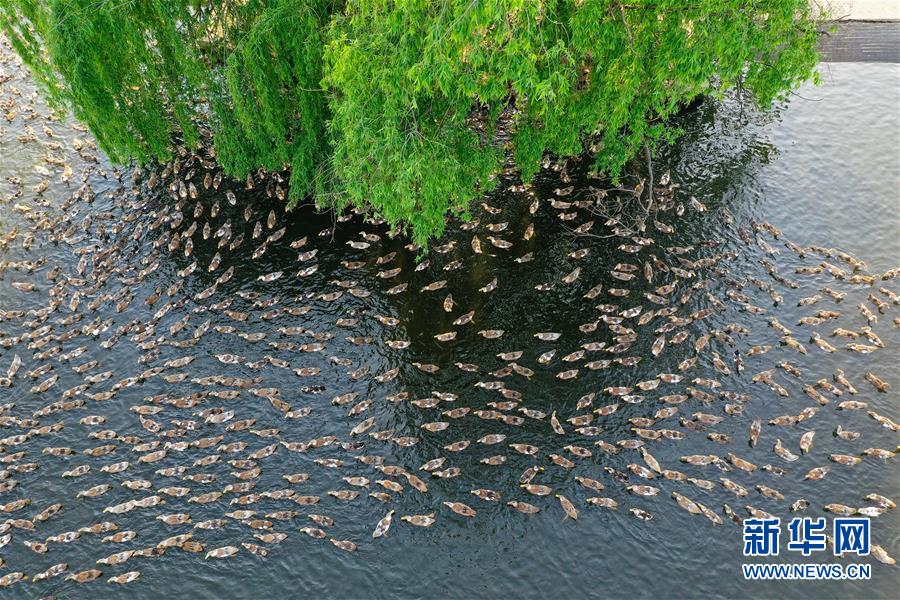 這是4月15日在高郵鴨良種繁育中心拍攝的鴨群(無(wú)人機(jī)照片)。“高郵鴨蛋”是江蘇高郵的特色農(nóng)業(yè)名片。近年來(lái),當(dāng)?shù)卦诹挤N繁育、生態(tài)養(yǎng)殖、產(chǎn)品加工等方面加大力度,推動(dòng)高郵鴨蛋品牌化建設(shè),讓小鴨蛋成為帶動(dòng)農(nóng)戶致富的大產(chǎn)業(yè)。2019年,高郵市共計(jì)生產(chǎn)熟制鴨蛋產(chǎn)品近11.2億枚,年產(chǎn)值近17.68億元。新華社記者季春鵬攝