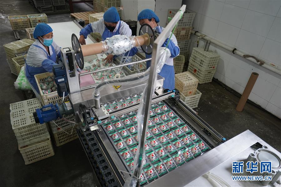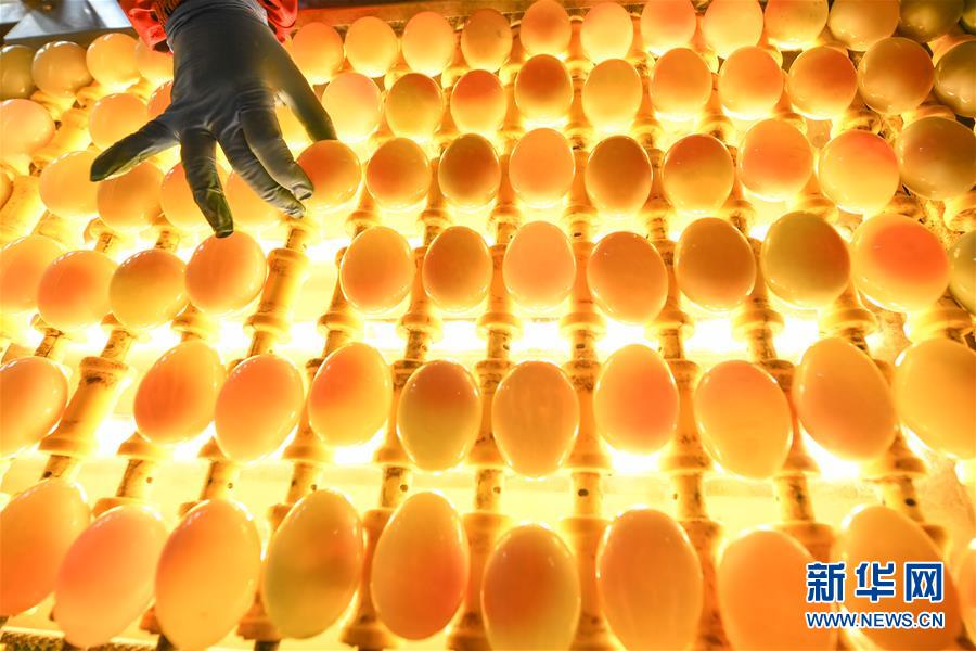 4月15日,在江蘇高郵鴨集團(tuán),工人在生產(chǎn)線上忙碌。“高郵鴨蛋”是江蘇高郵的特色農(nóng)業(yè)名片。近年來(lái),當(dāng)?shù)卦诹挤N繁育、生態(tài)養(yǎng)殖、產(chǎn)品加工等方面加大力度,推動(dòng)高郵鴨蛋品牌化建設(shè),讓小鴨蛋成為帶動(dòng)農(nóng)戶致富的大產(chǎn)業(yè)。2019年,高郵市共計(jì)生產(chǎn)熟制鴨蛋產(chǎn)品近11.2億枚,年產(chǎn)值近17.68億元。新華社記者季春鵬攝