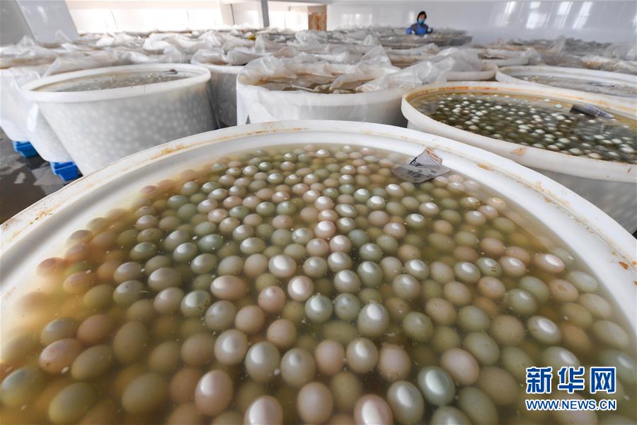 在江蘇高郵鴨集團(tuán)生產(chǎn)車間,腌制好的鴨蛋準(zhǔn)備進(jìn)行清洗包裝作業(yè)(4月15日攝)?!案哙]鴨蛋”是江蘇高郵的特色農(nóng)業(yè)名片。近年來(lái),當(dāng)?shù)卦诹挤N繁育、生態(tài)養(yǎng)殖、產(chǎn)品加工等方面加大力度,推動(dòng)高郵鴨蛋品牌化建設(shè),讓小鴨蛋成為帶動(dòng)農(nóng)戶致富的大產(chǎn)業(yè)。2019年,高郵市共計(jì)生產(chǎn)熟制鴨蛋產(chǎn)品近11.2億枚,年產(chǎn)值近17.68億元。新華社記者李博攝