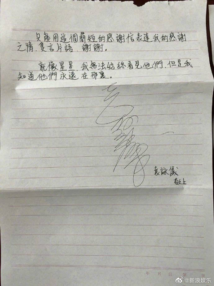 她在信中說(shuō),出發(fā)前,她和家人十分擔(dān)心,不知如何過(guò)關(guān)、坐車、去酒店,但進(jìn)入深圳灣口岸后,她所有的擔(dān)心都沒(méi)有了,因?yàn)橛辛舜蠹业膶I(yè)和負(fù)責(zé),各個(gè)環(huán)節(jié)的嚴(yán)謹(jǐn)和有序,工作人員的耐心和細(xì)致,她在半小時(shí)內(nèi)就完成所有流程,坐上了去酒店的巴士。信里,袁詠儀對(duì)政府工作人員表示了感謝,“就像星星,我無(wú)法始終看見(jiàn)他們,但是我知道他們永遠(yuǎn)在那里。”
