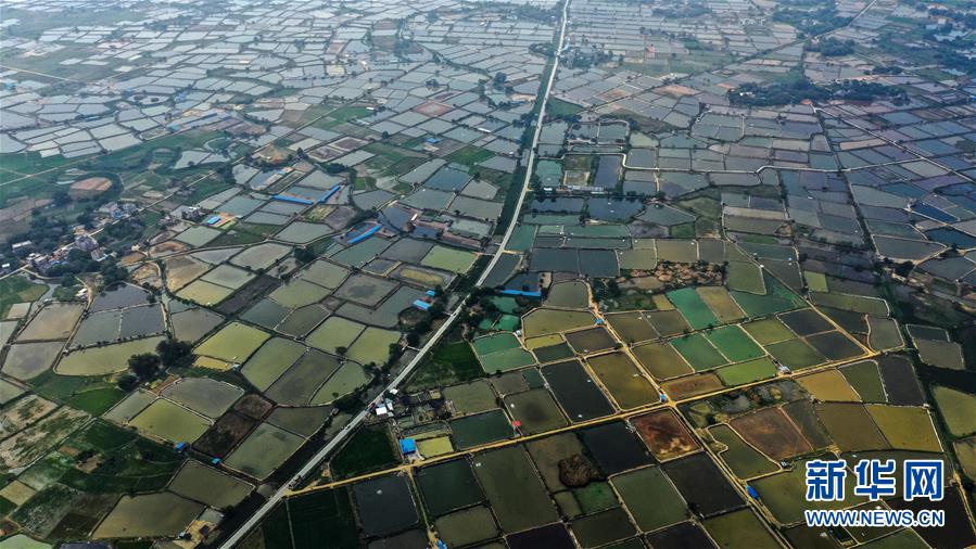 新華社照片,合浦(廣西),2020年4月21日鳥瞰廣西合浦春色這是4月21日拍攝的合浦縣境內的春日風光(無人機照片)。暮春時節(jié),從空中俯瞰廣西北海市合浦縣大地,河流、稻田、蝦塘、道路、村莊星羅棋布、色彩斑斕,美不勝收。新華社記者張愛林攝