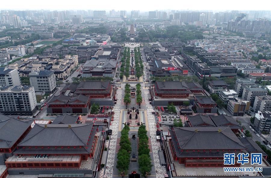 4月23日拍攝的西安大唐不夜城步行街(無人機照片)。 新華社記者 張博文 攝