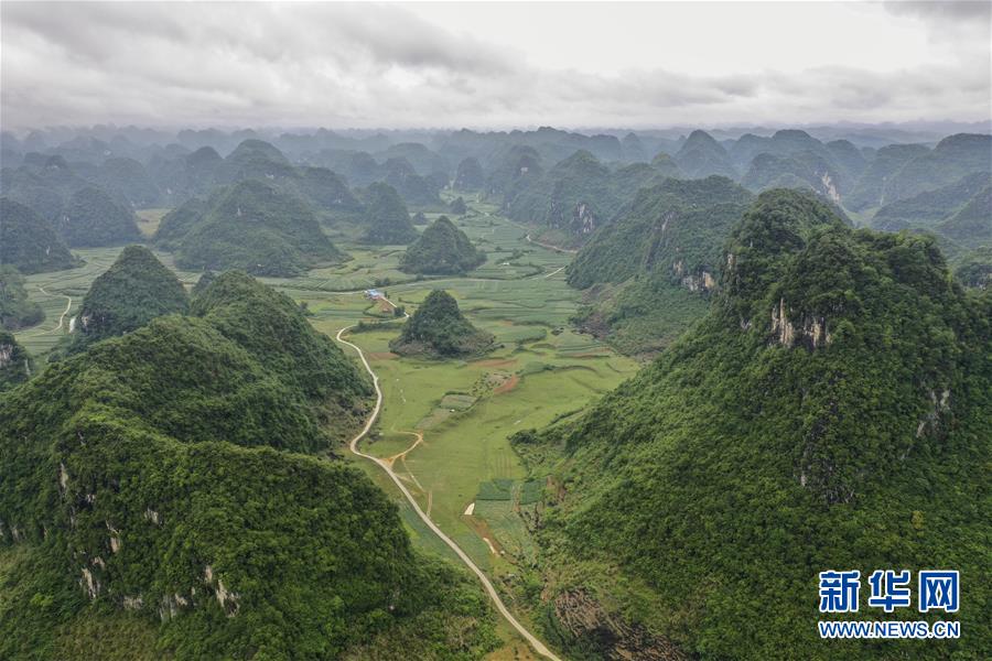 廣西隆安縣南圩鎮(zhèn)田園景色(4月23日攝,無人機照片)。新華社記者曹祎銘攝