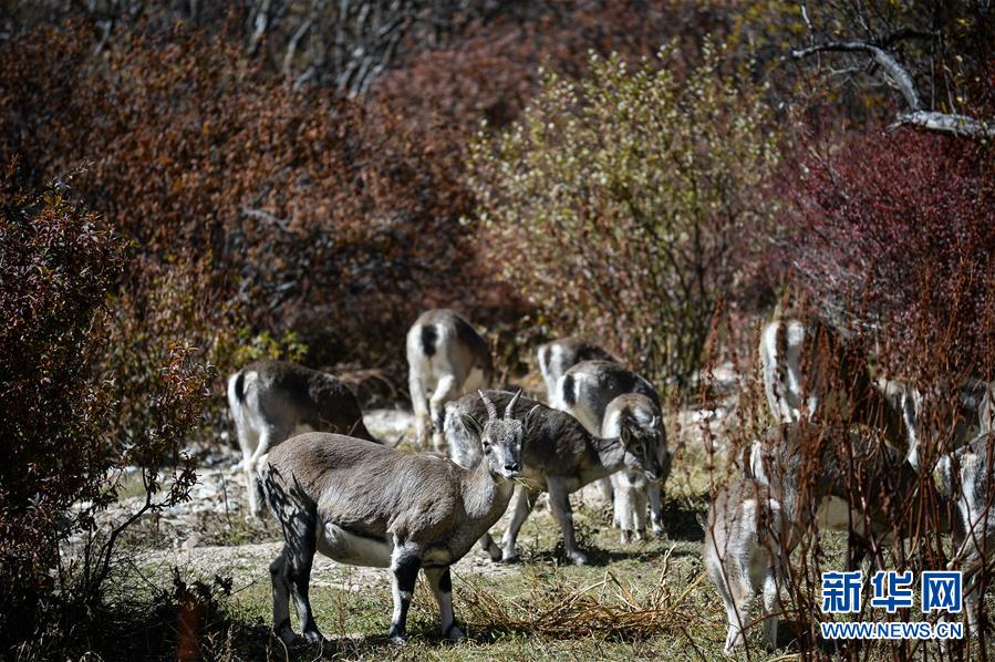 這是在四川亞丁國家級自然保護(hù)區(qū)拍攝的野生巖羊(2019年10月20日攝)。新華社記者唐文豪攝