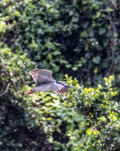 夜鷺,夜出性。喜結(jié)群,常成小群于晨、昏和夜間活動,白天結(jié)群隱藏于密林中僻靜處,或分散成小群棲息在僻靜的山坡、水庫或湖中小島上的灌叢或高大樹木的枝葉叢中,偶爾也見有單獨(dú)活動和棲息的。