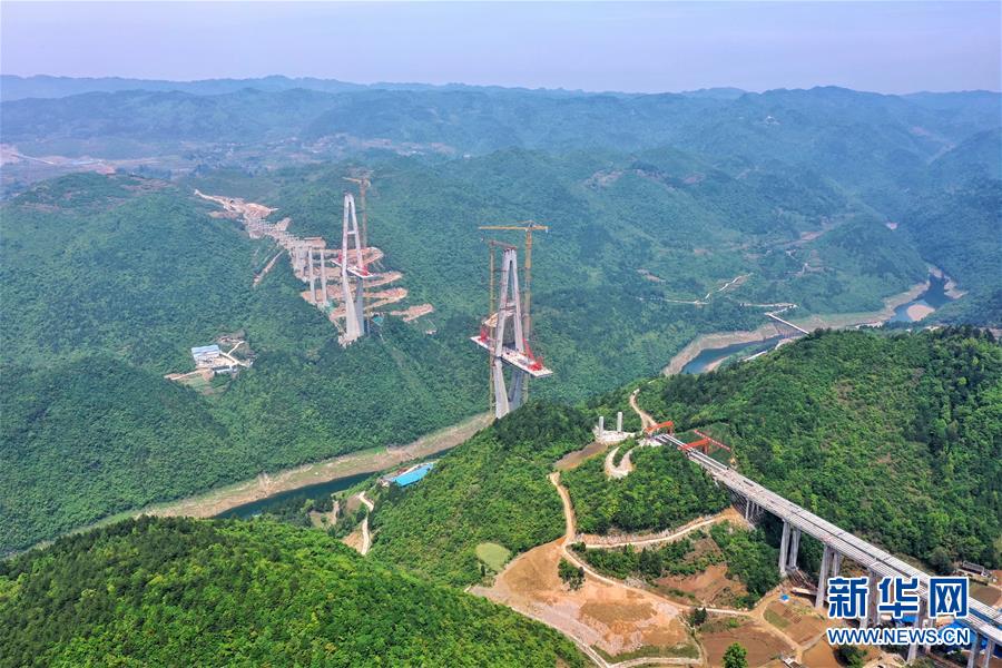 這是建設(shè)中的遵余高速湘江大橋(4月26日攝,無人機照片)。近日,由中鐵廣州局承建的貴州遵余高速湘江大橋工程在做好疫情防控的同時,全力恢復生產(chǎn)建設(shè)。目前工程進展順利,正在進行主橋鋼梁架設(shè),預計將于8月底合龍。據(jù)了解,遵余高速湘江大橋橋梁全長1700余米,主跨560米。新華社記者劉續(xù)攝