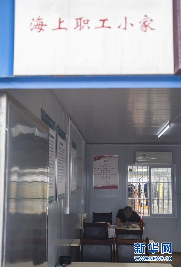盡管工人生活區(qū)建在海上,但是生活設(shè)施一應(yīng)俱全。中交二航局每日專門(mén)拉運(yùn)淡水與新鮮食材到生活區(qū),并設(shè)置了圖書(shū)室與電影區(qū)等配套設(shè)施,為生活區(qū)的工人們做好后勤保障,助力施工建設(shè)。