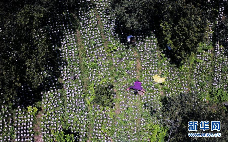 村民在劍河縣岑松鎮(zhèn)巫亮村林下仿野生食用菌基地采摘木耳(4月27日攝,無人機(jī)照片)。近年來,貴州省黔東南苗族侗族自治州劍河縣充分利用林下土地培育木耳,既不耽誤林木生長(zhǎng),又發(fā)展了食用菌產(chǎn)業(yè)。目前,該縣采取“龍頭企業(yè)+合作社+貧困戶”的合作模式,大力推廣林下木耳種植,帶動(dòng)農(nóng)民增收。新華社記者楊文斌攝