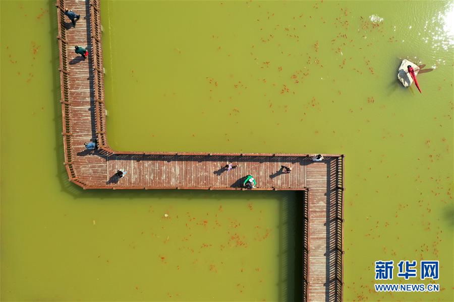 5月1日,游客在河南省鶴壁市淇濱區(qū)鉅橋鎮(zhèn)崗坡村棧橋上游玩(無人機(jī)照片)。河南省鶴壁市淇濱區(qū)鉅橋鎮(zhèn)崗坡村是一座有著千年歷史的古村落。近年來,淇濱區(qū)深入踐行鄉(xiāng)村振興戰(zhàn)略,打造以崗坡村為中心的龍崗鄉(xiāng)村振興示范帶,采取“村集體土地入股、資金入股、年底分紅”的運(yùn)作模式,實(shí)現(xiàn)了“資源變資產(chǎn)、資金變股金、村民變股民”的“三變”。農(nóng)戶通過到龍崗鄉(xiāng)村振興示范園打工等方式,實(shí)現(xiàn)就近就業(yè),每人每月至少有2500元至3000元的保底工資。 新華社記者馮大鵬攝