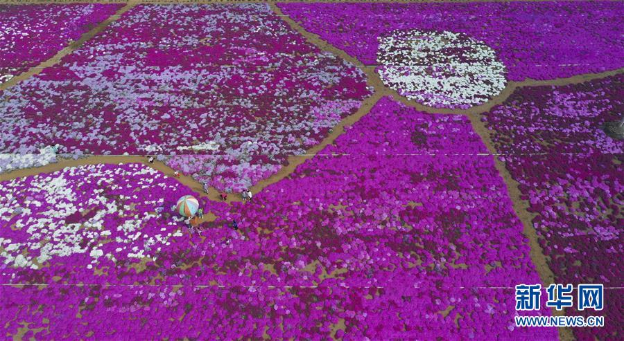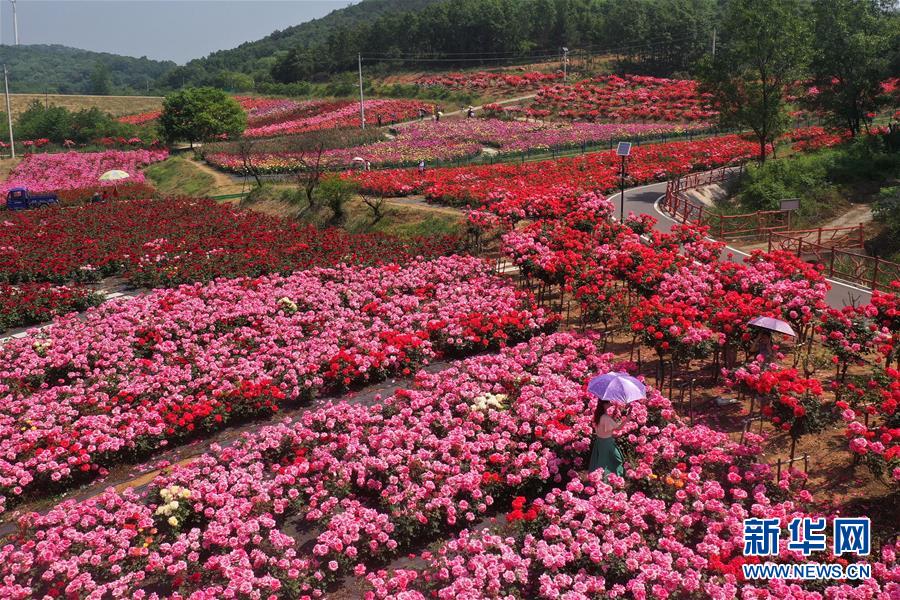 5月2日,市民在河北唐山遵化市小廠鄉(xiāng)一處農(nóng)業(yè)觀光園賞花游玩(無人機(jī)照片)?!拔逡弧奔偃掌陂g,人們以多種方式放松心情、享受假日。新華社發(fā)(劉滿倉攝)
