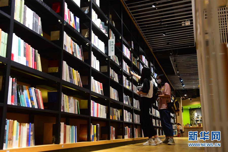 5月2日,讀者在江蘇無錫一家書店挑選圖書?!拔逡弧奔偃掌陂g,人們以多種方式放松心情、享受假日。新華社發(fā)(還月亮攝)