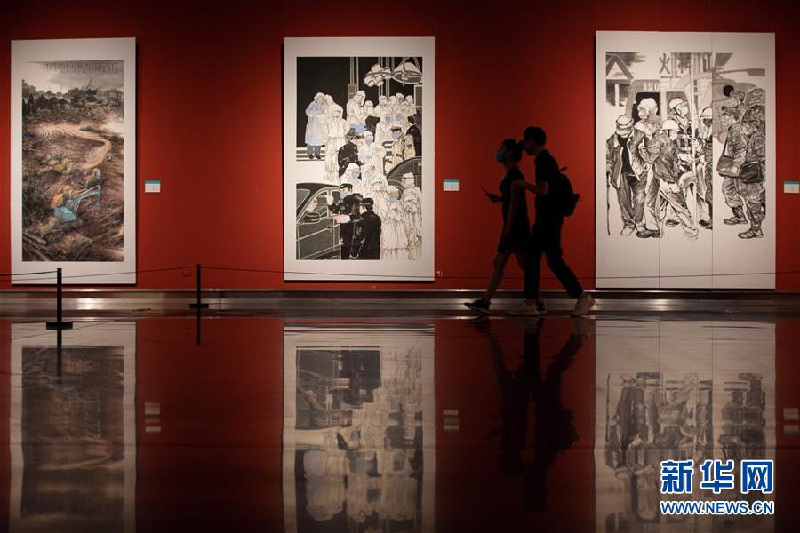 5月2日,觀眾在位于南京的江蘇省美術(shù)館觀看江蘇省抗疫主題美術(shù)書法精品展?!拔逡弧奔偃掌陂g,人們以多種方式放松心情、享受假日。新華社發(fā)(蘇陽攝)