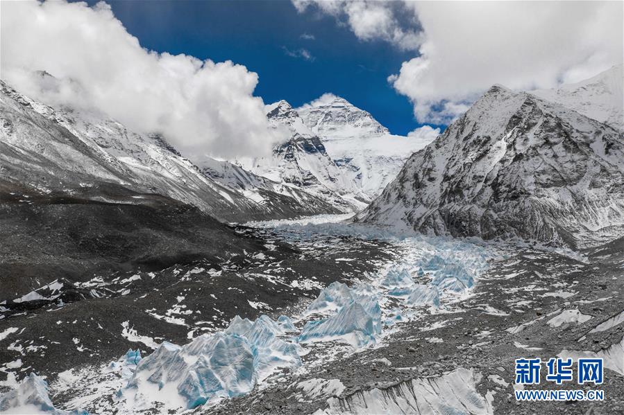 位于珠穆朗瑪峰腳下海拔5400米左右的中絨布冰川(4月30日攝,無(wú)人機(jī)照片)。位于珠穆朗瑪峰腳下海拔5400米左右的中絨布冰川,巍峨壯觀,冰塔林托起世界最高峰,讓人嘆為觀止。新華社記者旦增尼瑪曲珠攝